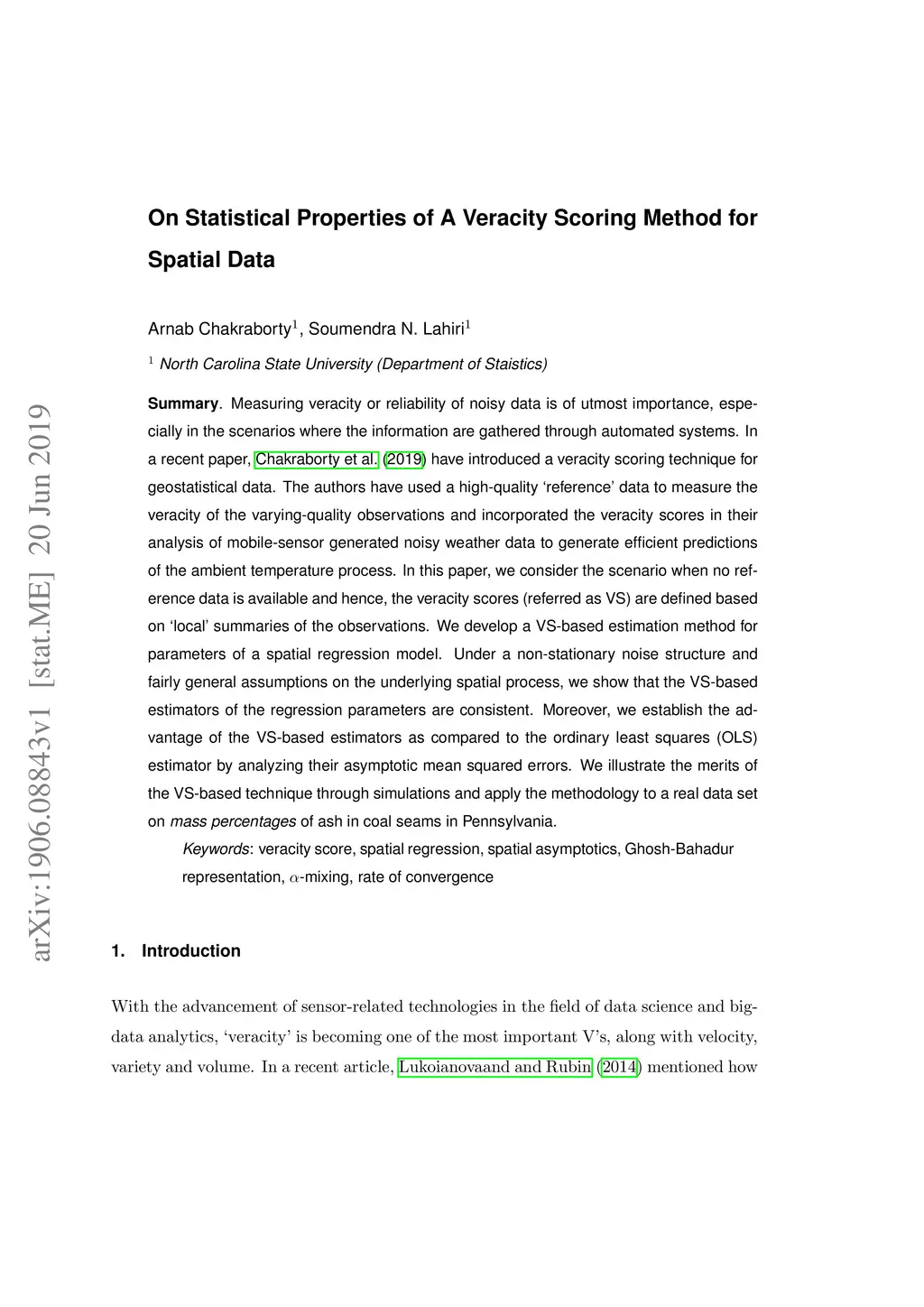 On Statistical Properties of A Veracity Scoring Method for Spatial Data