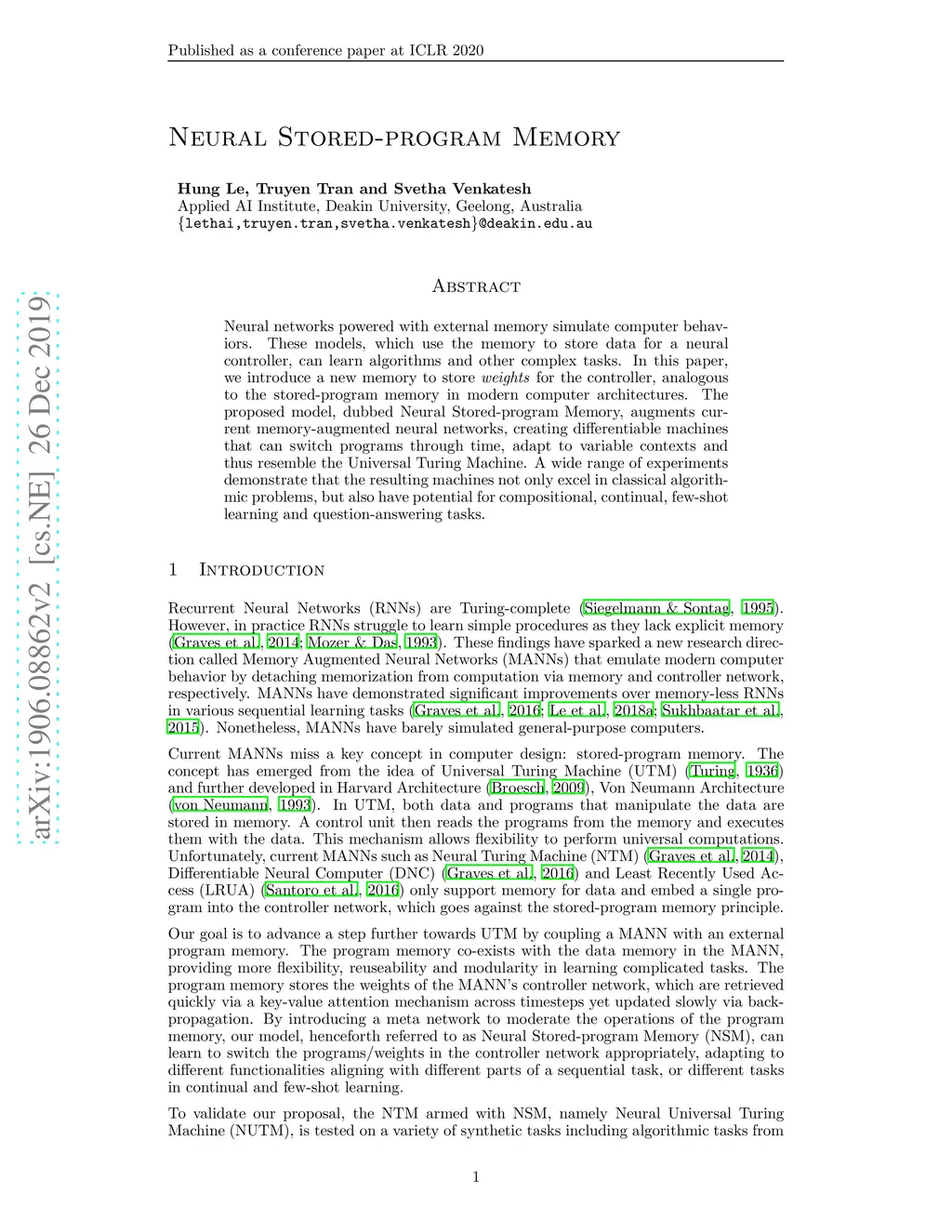 Neural Stored-program Memory