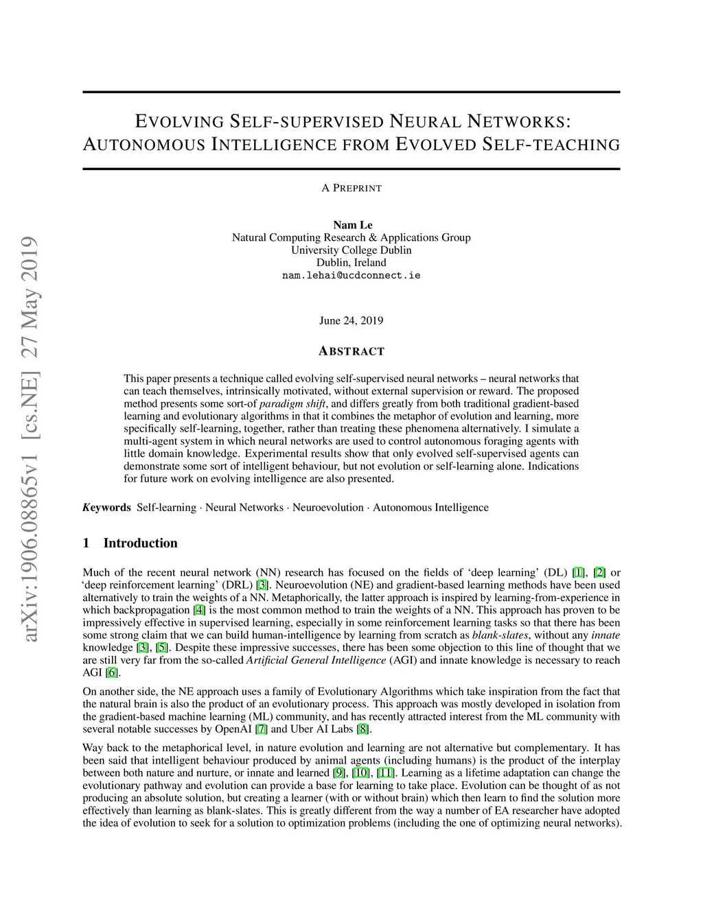Evolving Self-supervised Neural Networks: Autonomous Intelligence from