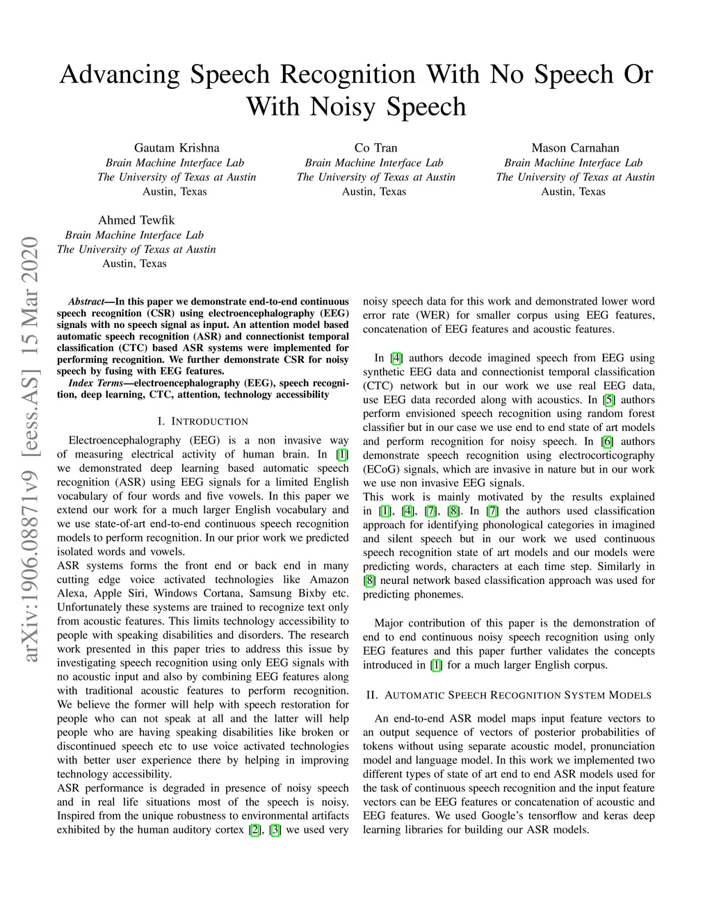Advancing Speech Recognition With No Speech Or With Noisy Speech