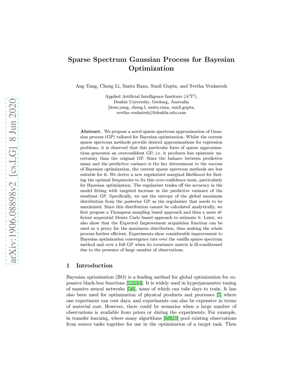 Sparse Spectrum Gaussian Process for Bayesian Optimisation
