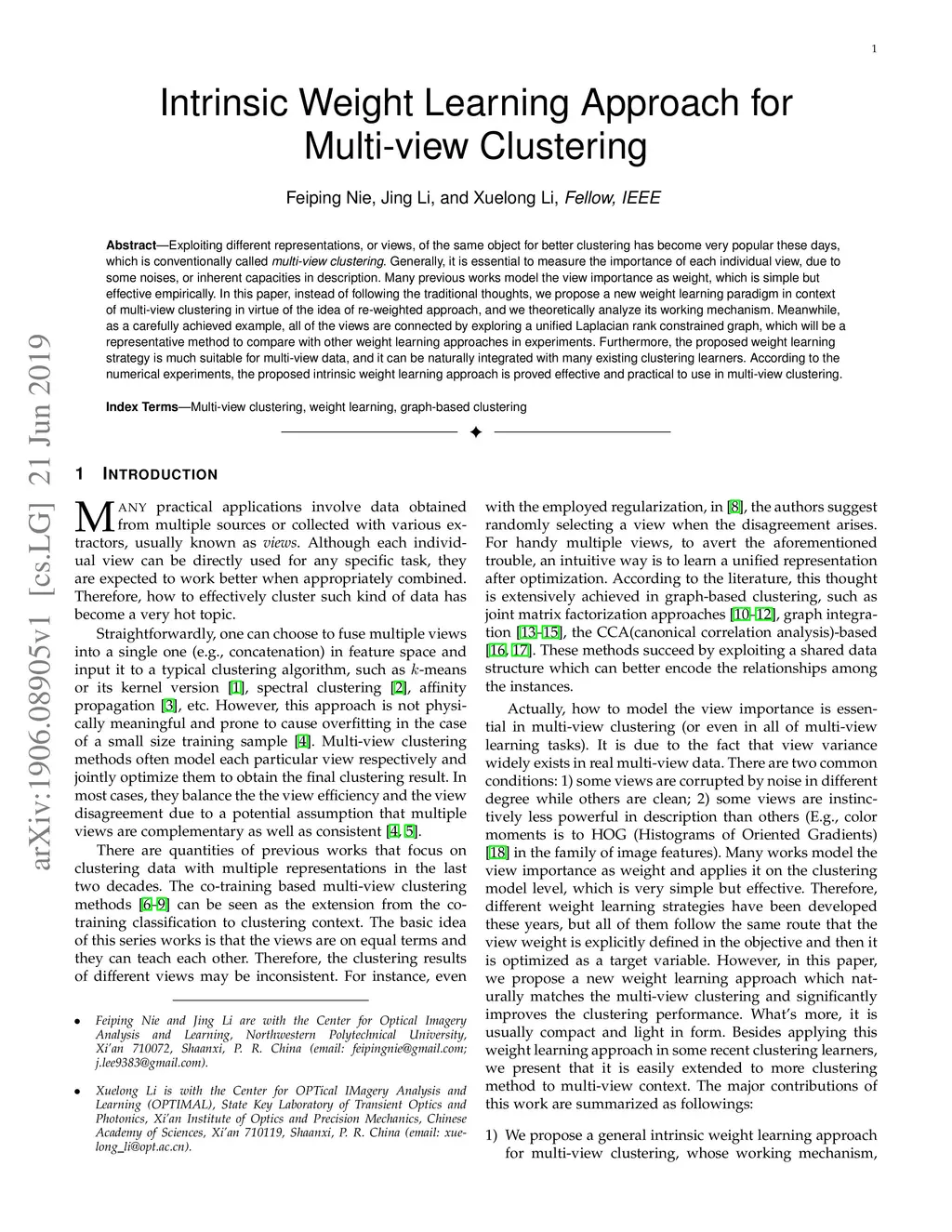 Intrinsic Weight Learning Approach for Multi-view Clustering