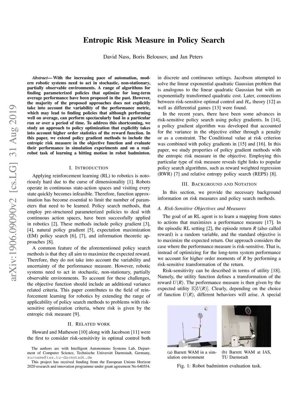 Entropic Risk Measure in Policy Search
