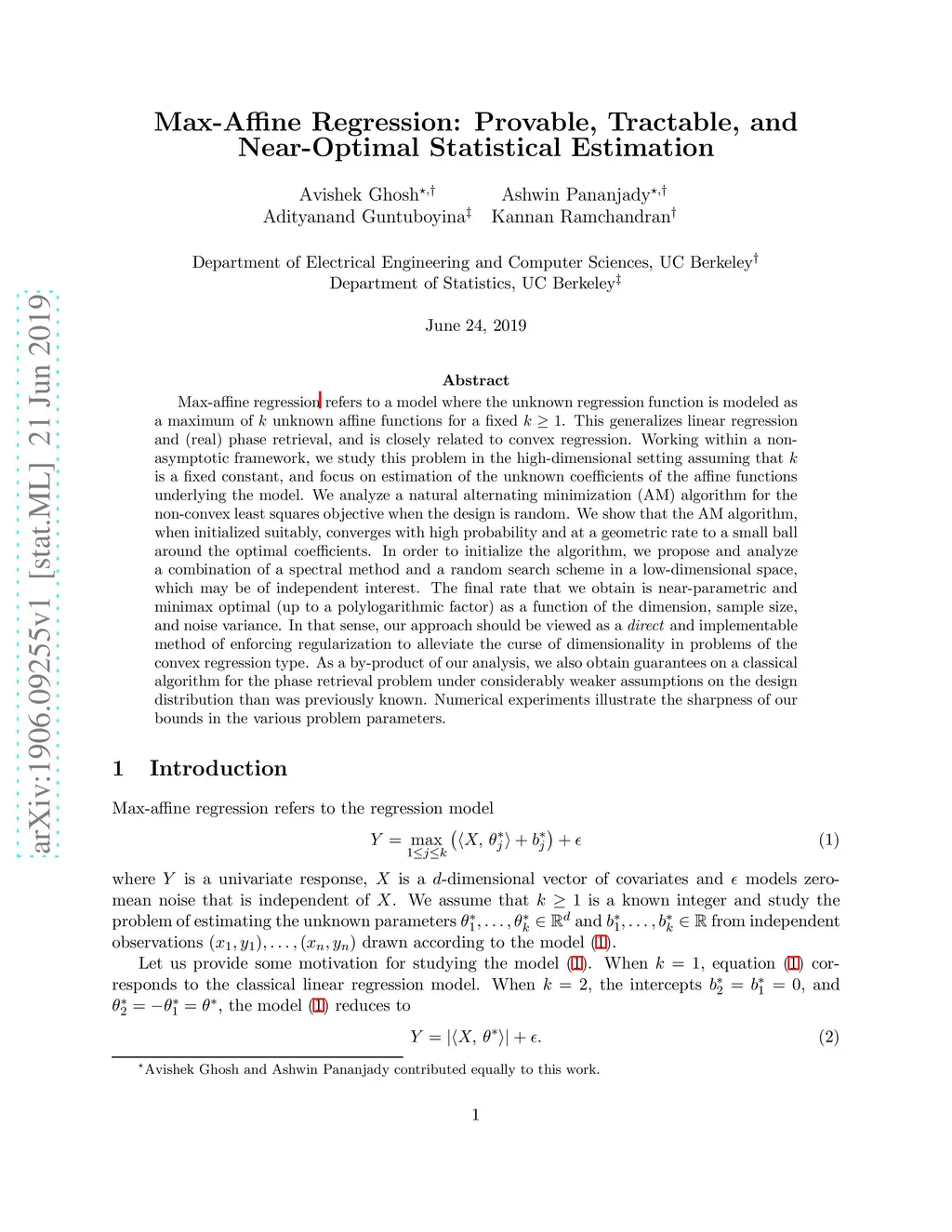 Max-Affine Regression: Provable, Tractable, and Near-Optimal Statistical