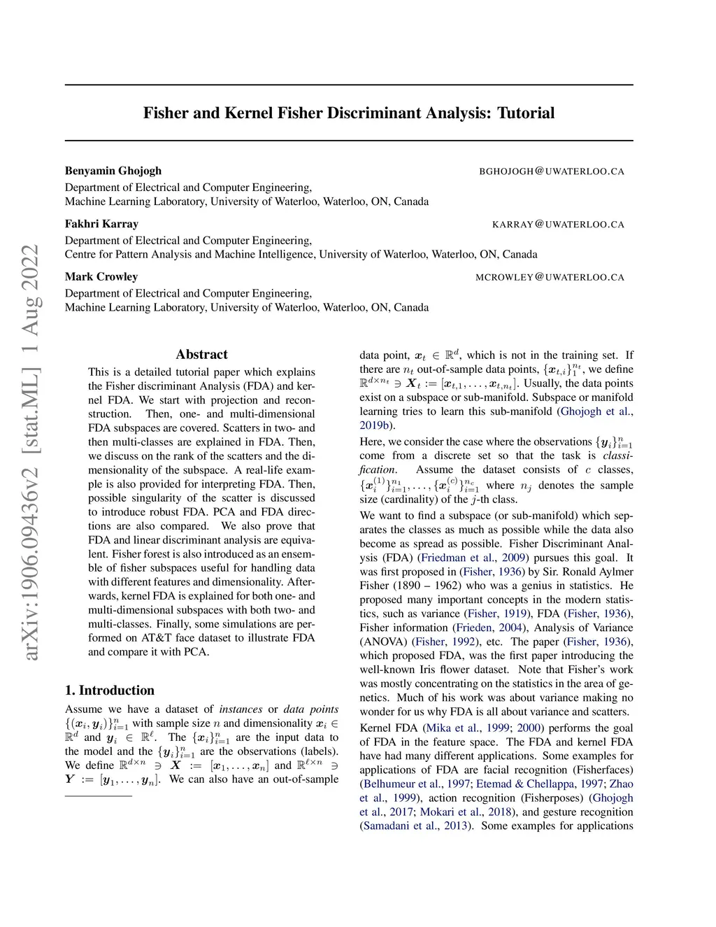 Fisher and Kernel Fisher Discriminant Analysis: Tutorial