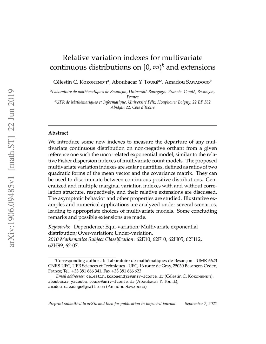 We introduce some new indexes to measure the departure of any multivariate continuous distribution on non-negative orthant from a given reference one such the uncorrelated exponential model, similar to the relative Fisher dispersion indexes of multivariate count models. The proposed multivariate variation indexes are scalar quantities, defined as ratios of two quadratic forms of the mean vector and the covariance matrix. They can be used to discriminate between continuous positive distributions. Generalized and multiple marginal variation indexes with and without correlation structure, respectively, and their relative extensions are discussed. The asymptotic behavior and other properties are studied. Illustrative examples and numerical applications are analyzed under several scenarios, leading to appropriate choices of multivariate models. Some concluding remarks and possible extensions are made.