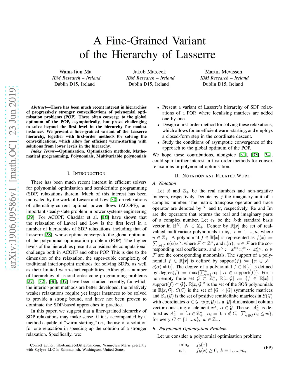 There has been much recent interest in hierarchies of progressively stronger convexifications of polynomial optimisation problems (POP). These often converge to the global optimum of the POP, asymptotically, but prove challenging to solve beyond the first level in the hierarchy for modest instances. We present a finer-grained variant of the Lasserre hierarchy, together with first-order methods for solving the convexifications, which allow for efficient warm-starting with solutions from lower levels in the hierarchy.