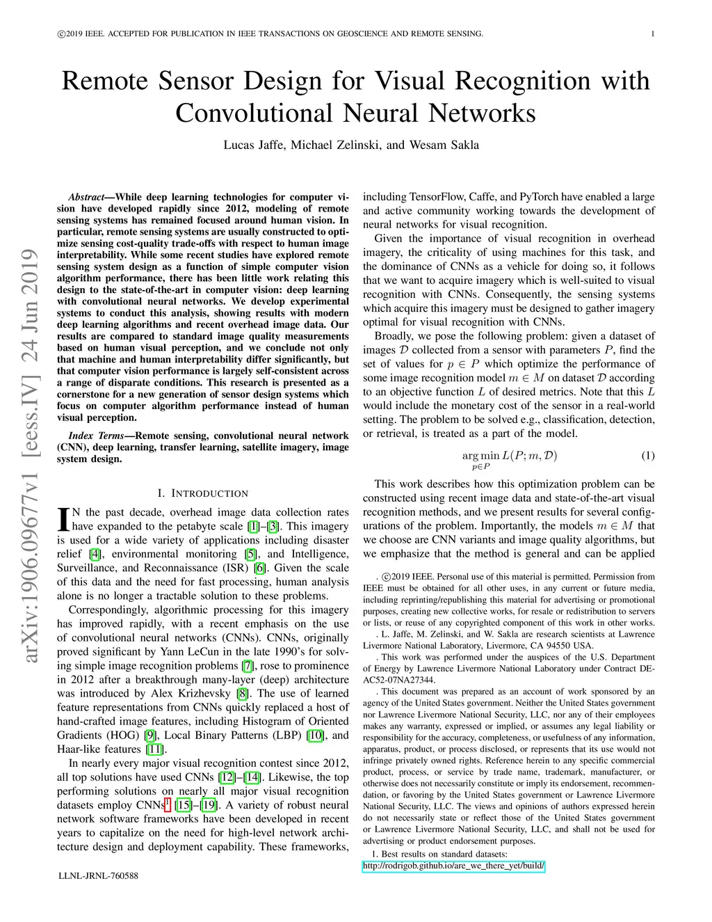 Remote Sensor Design for Visual Recognition with Convolutional Neural