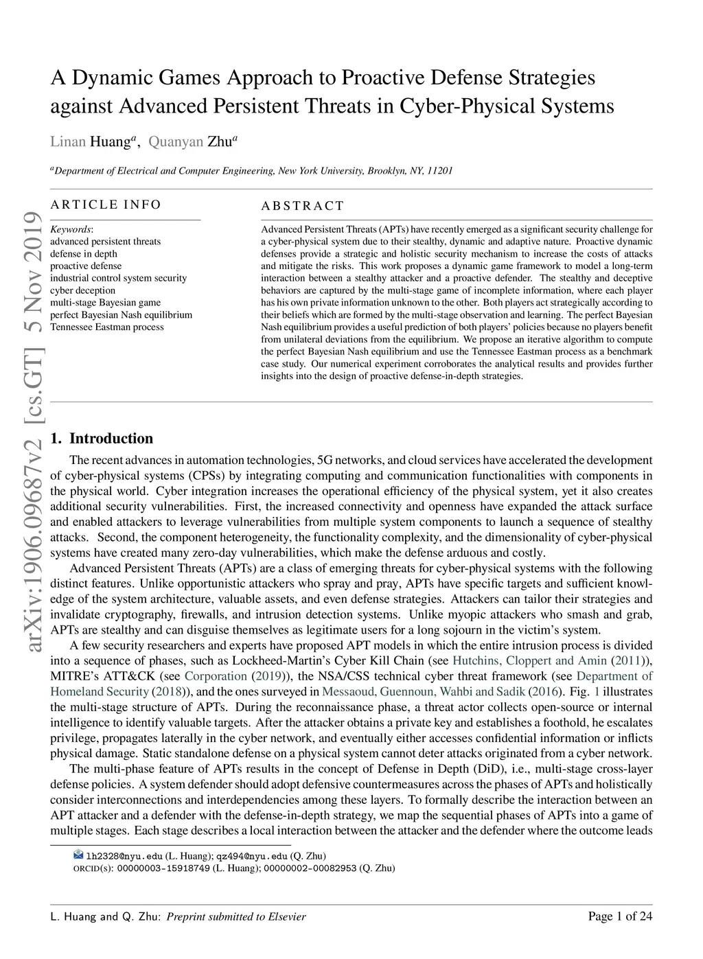 Advanced Persistent Threats in Cyber-Physical Systems