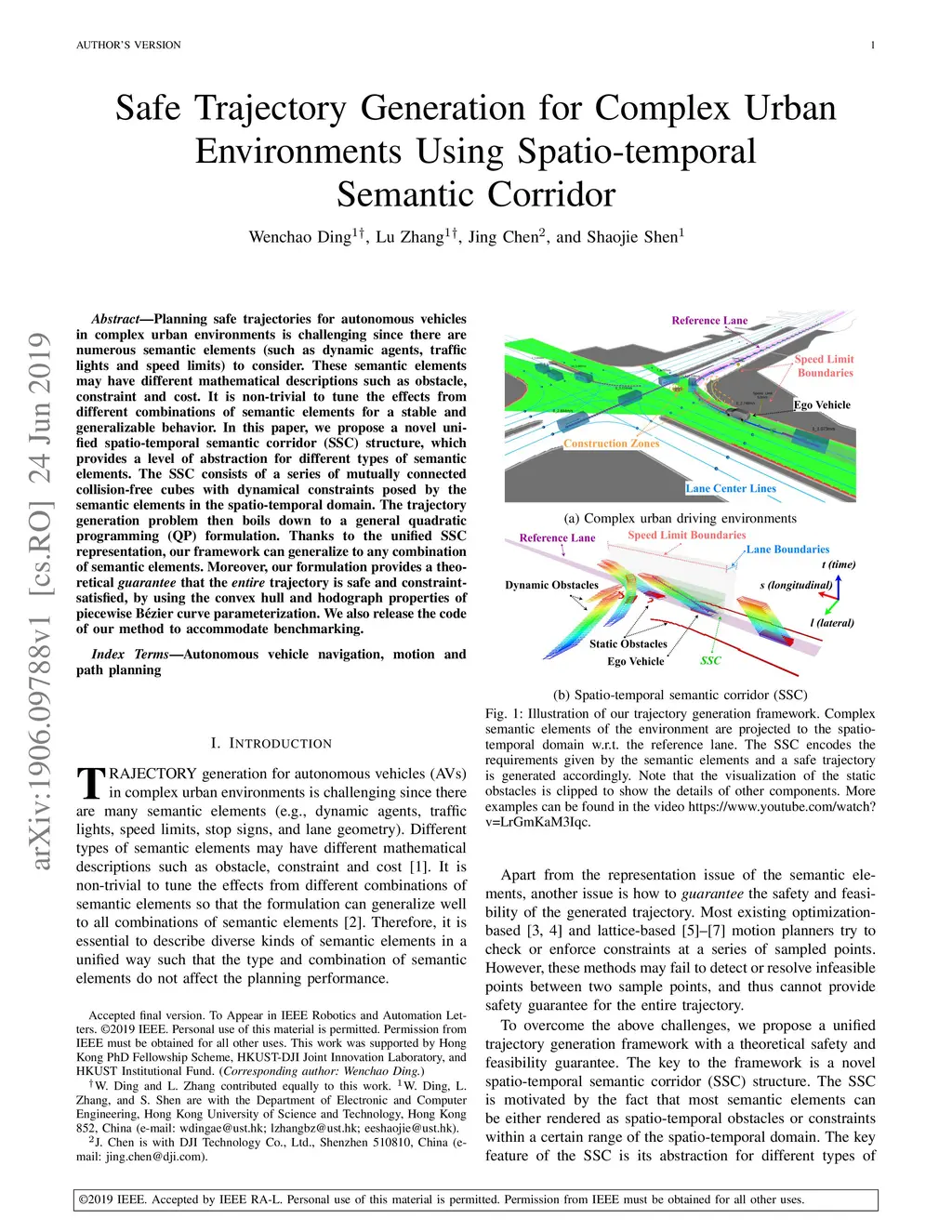 Planning safe trajectories for autonomous vehicles in complex urban environments is challenging since there are numerous semantic elements (such as dynamic agents, traffic lights and speed limits) to consider. These semantic elements may have different mathematical descriptions such as obstacle, constraint and cost. It is non-trivial to tune the effects from different combinations of semantic elements for a stable and generalizable behavior. In this paper, we propose a novel unified spatio-temporal semantic corridor (SSC) structure, which provides a level of abstraction for different types of semantic elements. The SSC consists of a series of mutually connected collision-free cubes with dynamical constraints posed by the semantic elements in the spatio-temporal domain. The trajectory generation problem then boils down to a general quadratic programming (QP) formulation. Thanks to the unified SSC representation, our framework can generalize to any combination of semantic elements. Moreover, our formulation provides a theoretical guarantee that the entire trajectory is safe and constraint-satisfied, by using the convex hull and hodograph properties of piecewise Bezier curve parameterization. We also release the code of our method to accommodate benchmarking.