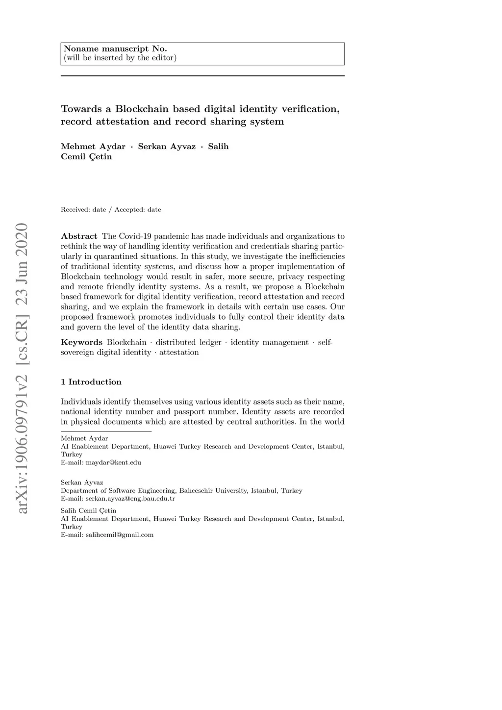 The Covid-19 pandemic has made individuals and organizations to rethink the way of handling identity verification and credentials sharing particularly in quarantined situations. In this study, we investigate the inefficiencies of traditional identity systems, and discuss how a proper implementation of Blockchain technology would result in safer, more secure, privacy respecting and remote friendly identity systems. As a result, we propose a Blockchain based framework for digital identity verification, record attestation and record sharing, and we explain the framework in details with certain use cases. Our proposed framework promotes individuals to fully control their identity data and govern the level of the identity data sharing.