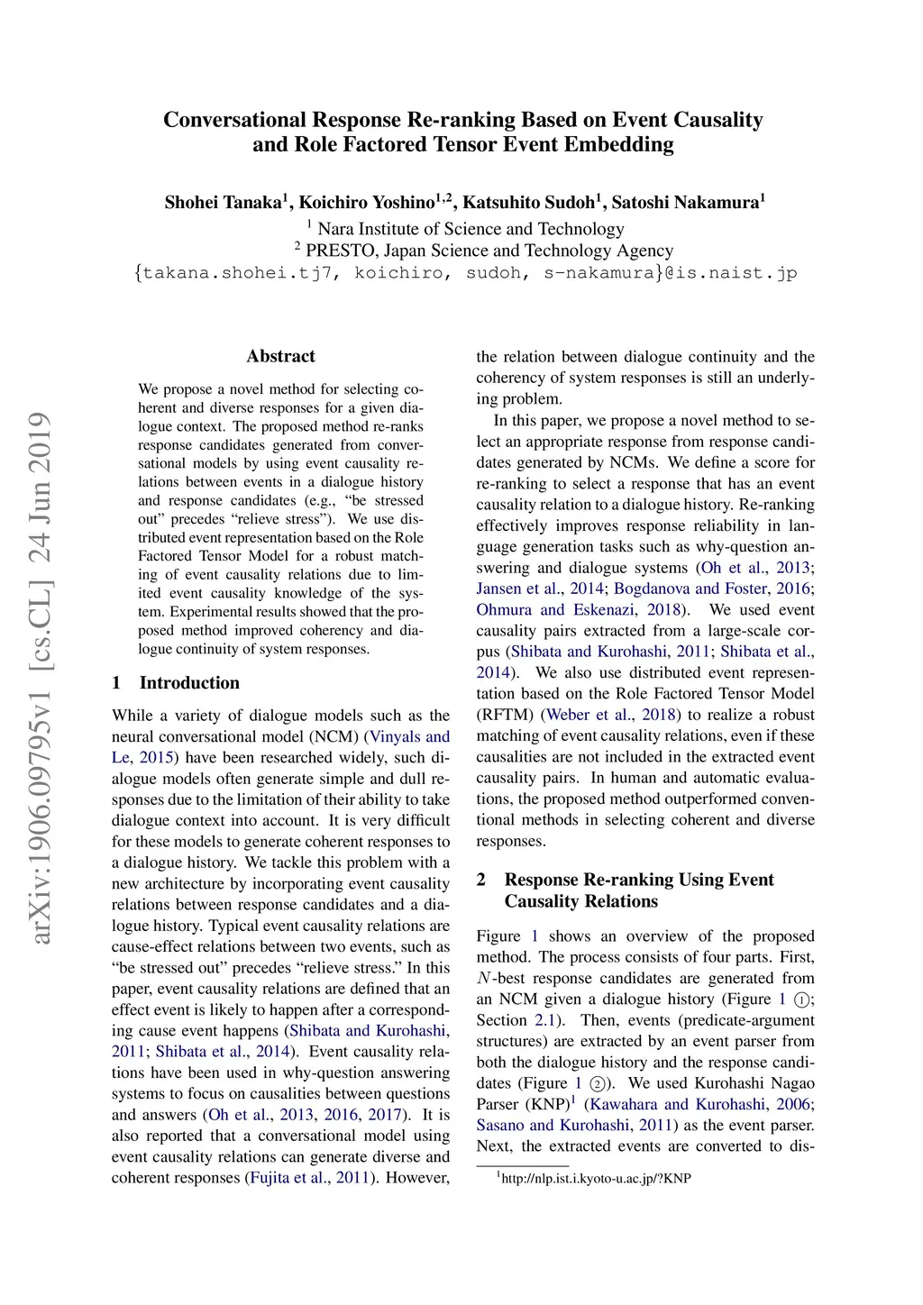Conversational Response Re-ranking Based on Event Causality and Role