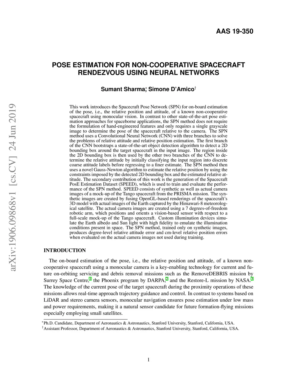 Pose Estimation for Non-Cooperative Rendezvous Using Neural Networks