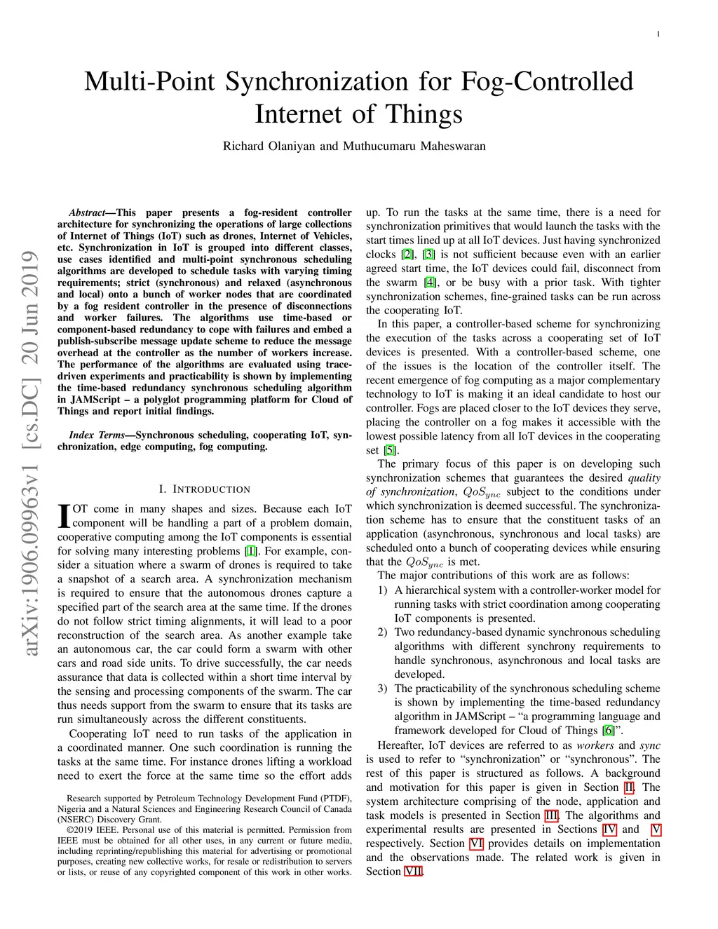 Multi-Point Synchronization for Fog-Controlled Internet of Things