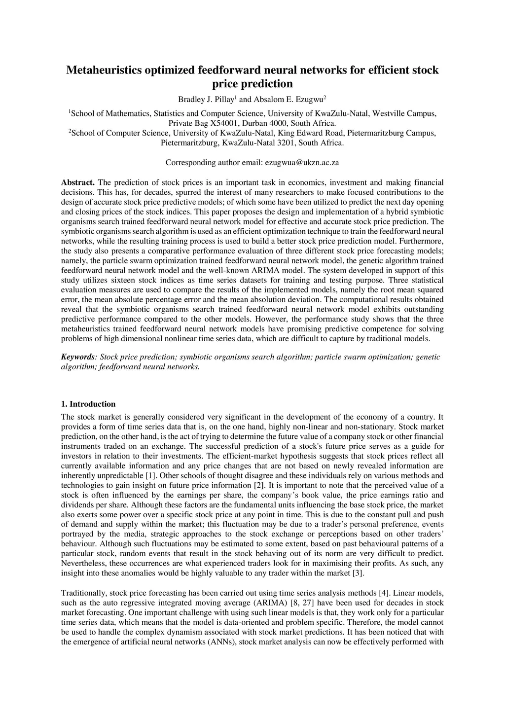 Metaheuristics optimized feedforward neural networks for efficient stock