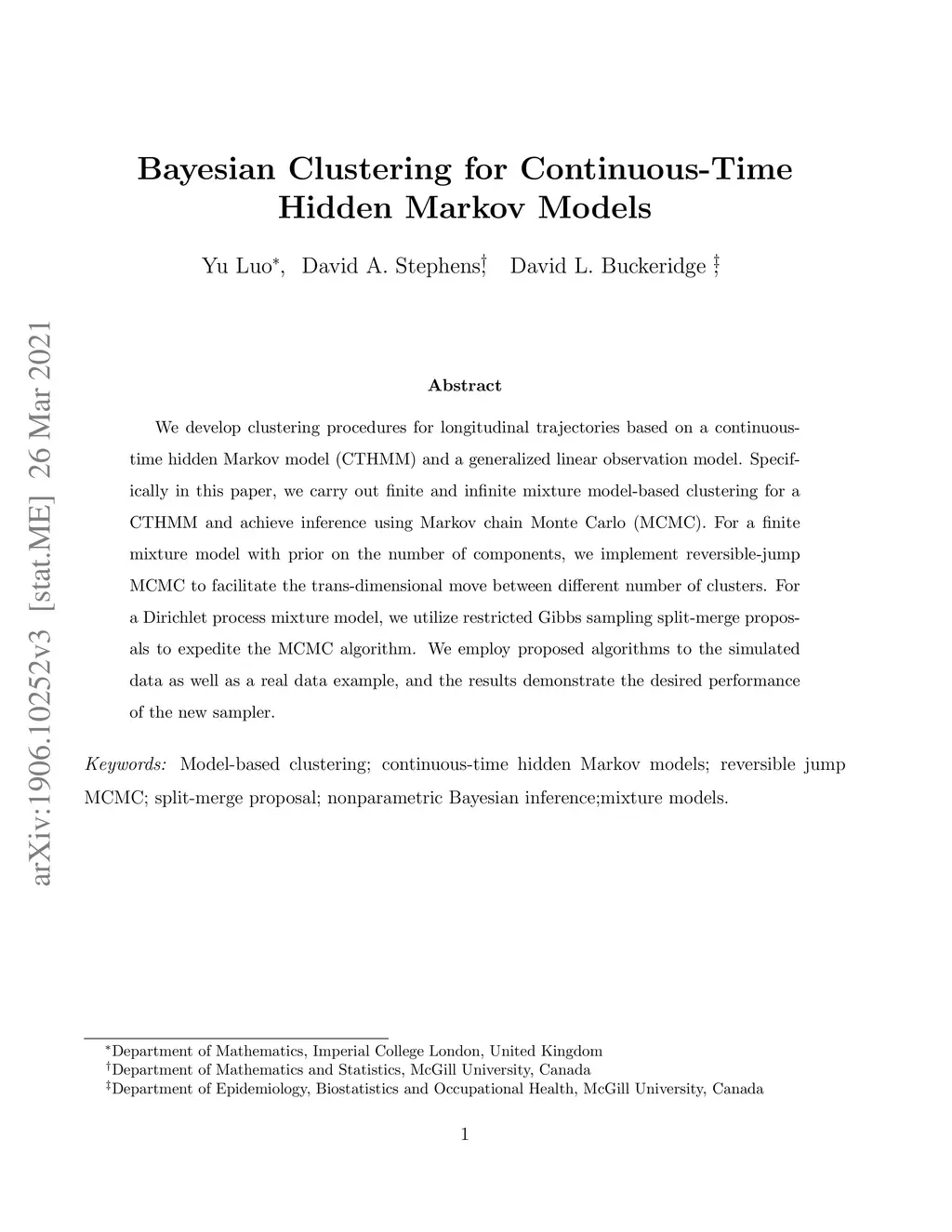 Bayesian Clustering for Continuous-Time Hidden Markov Models