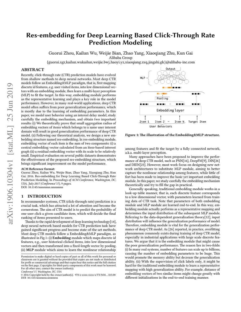 Res-embedding for Deep Learning Based Click-Through Rate Prediction