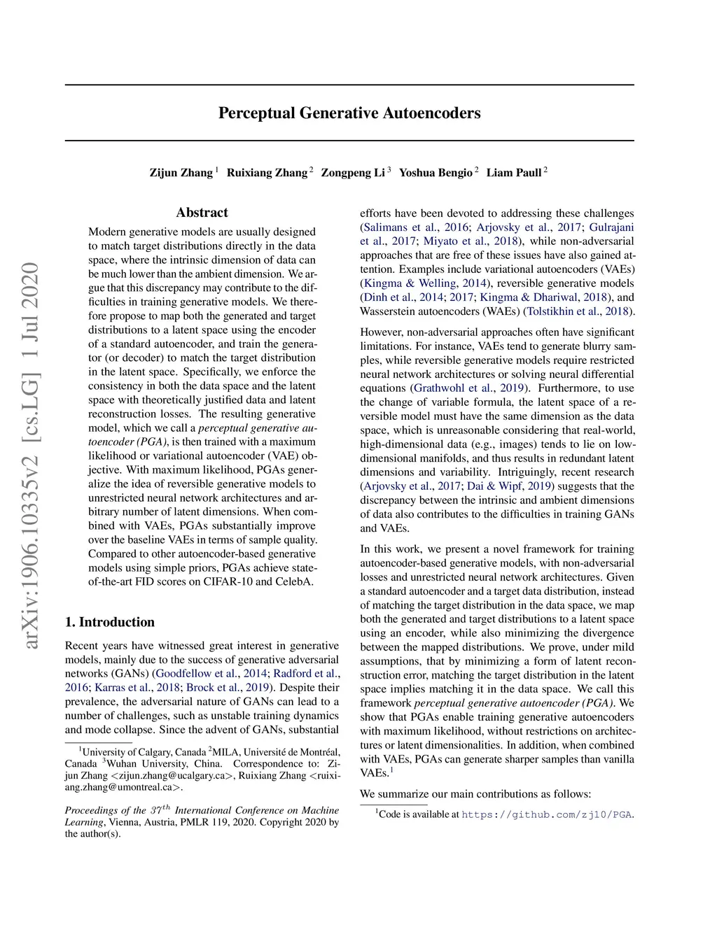 Perceptual Generative Autoencoders