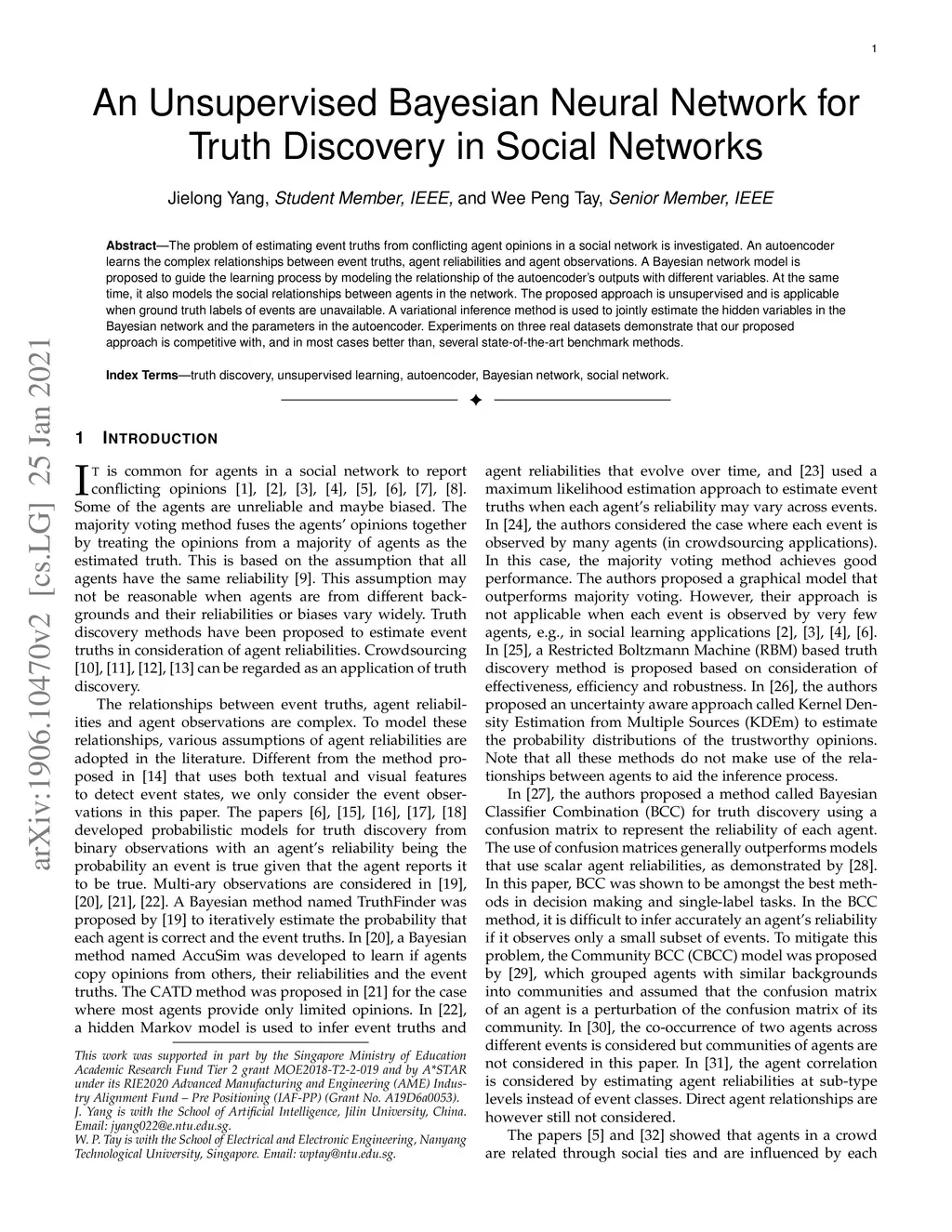 An Unsupervised Bayesian Neural Network for Truth Discovery in Social
