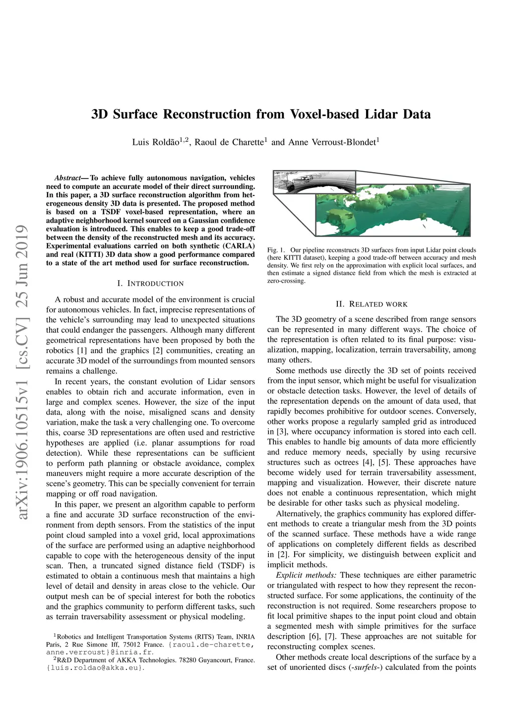 3D Surface Reconstruction from Voxel-based Lidar Data