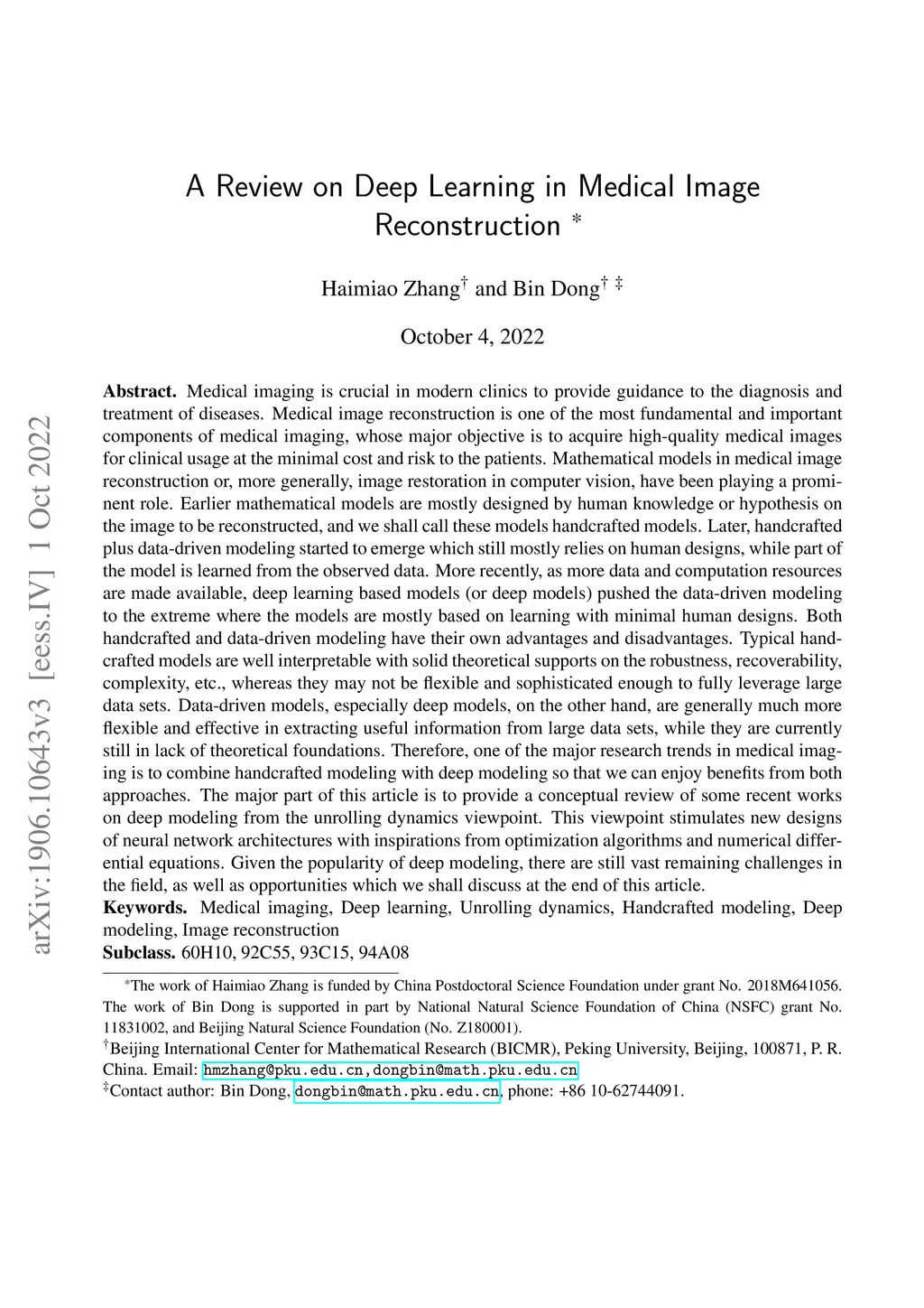 Medical imaging is crucial in modern clinics to guide the diagnosis and treatment of diseases. Medical image reconstruction is one of the most fundamental and important components of medical imaging, whose major objective is to acquire high-quality medical images for clinical usage at minimal cost and risk to the patients. Mathematical models in medical image reconstruction or, more generally, image restoration in computer vision, have been playing a prominent role. Earlier mathematical models are mostly designed by human knowledge or hypothesis on the image to be reconstructed, and we shall call these models handcrafted models. Later, handcrafted plus data-driven modeling started to emerge which still mostly relies on human designs, while part of the model is learned from the observed data. More recently, as more data and computation resources are made available, deep learning based models (or deep models) pushed data-driven modeling to the extreme where the models are mostly based on learning with minimal human designs. Both handcrafted and data-driven modeling have their own advantages and disadvantages. One of the major research trends in medical imaging is to combine handcrafted modeling with deep modeling so that we can enjoy benefits from both approaches. The major part of this article is to provide a conceptual review of some recent works on deep modeling from the unrolling dynamics viewpoint. This viewpoint stimulates new designs of neural network architectures with inspiration from optimization algorithms and numerical differential equations. Given the popularity of deep modeling, there are still vast remaining challenges in the field, as well as opportunities which we shall discuss at the end of this article.