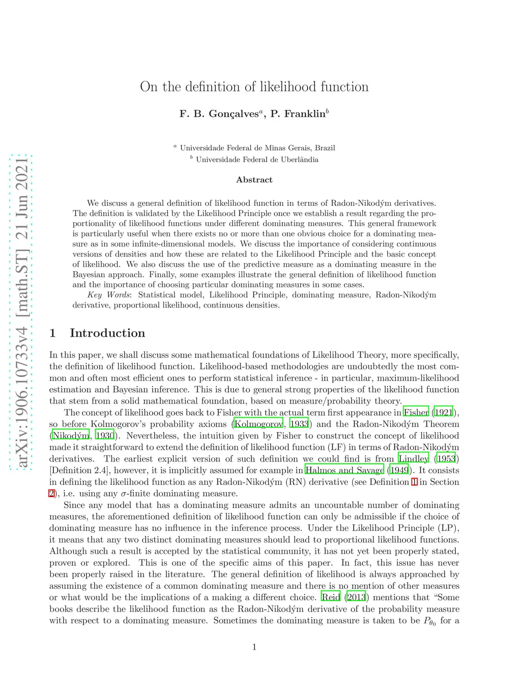 We discuss a general definition of likelihood function in terms of Radon-Nikod\'{y}m derivatives. The definition is validated by the Likelihood Principle once we establish a result regarding the proportionality of likelihood functions under different dominating measures. This general framework is particularly useful when there exists no or more than one obvious choice for a dominating measure as in some infinite-dimensional models. We discuss the importance of considering continuous versions of densities and how these are related to the Likelihood Principle and the basic concept of likelihood. We also discuss the use of the predictive measure as a dominating measure in the Bayesian approach. Finally, some examples illustrate the general definition of likelihood function and the importance of choosing particular dominating measures in some cases.