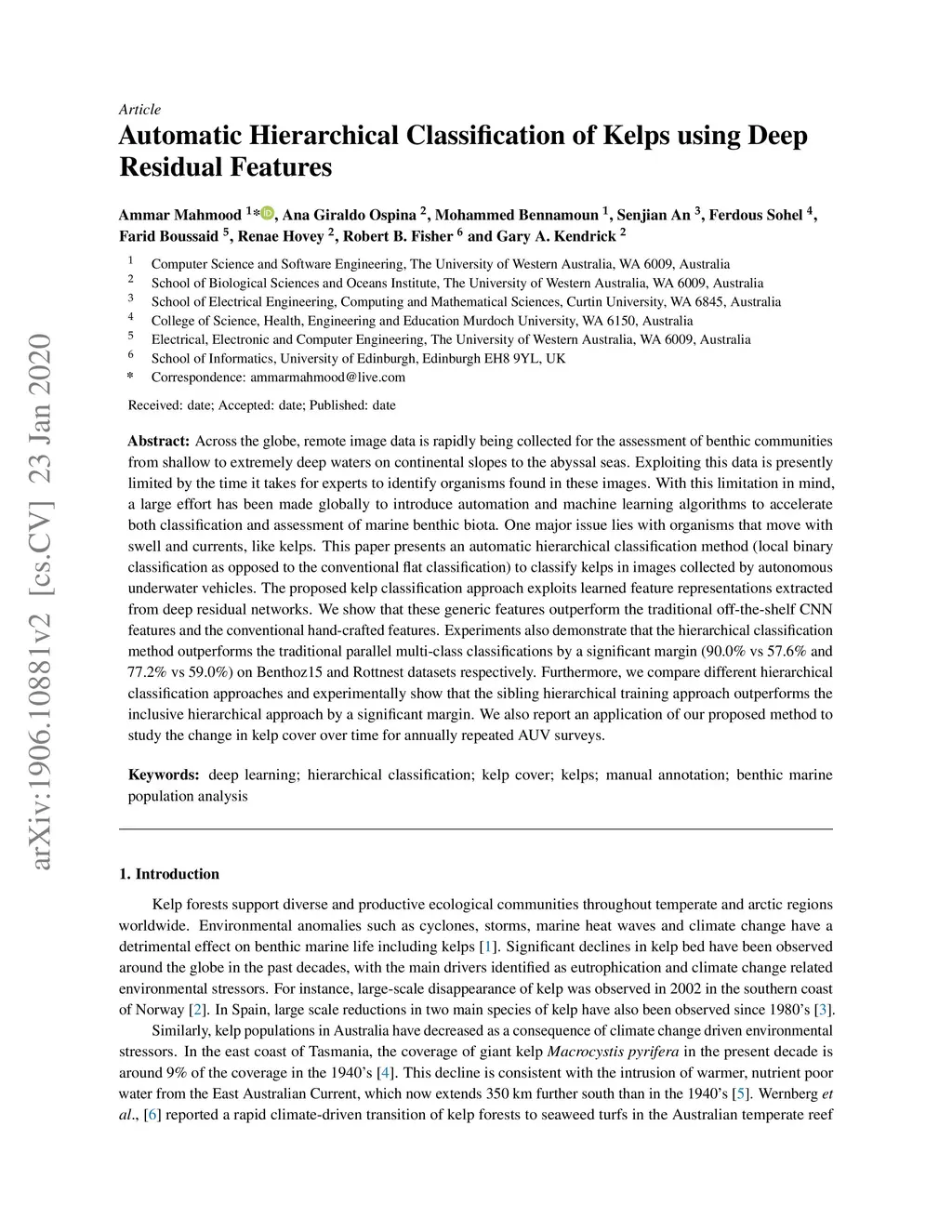 Automatic Hierarchical Classification of Kelps using Deep Residual