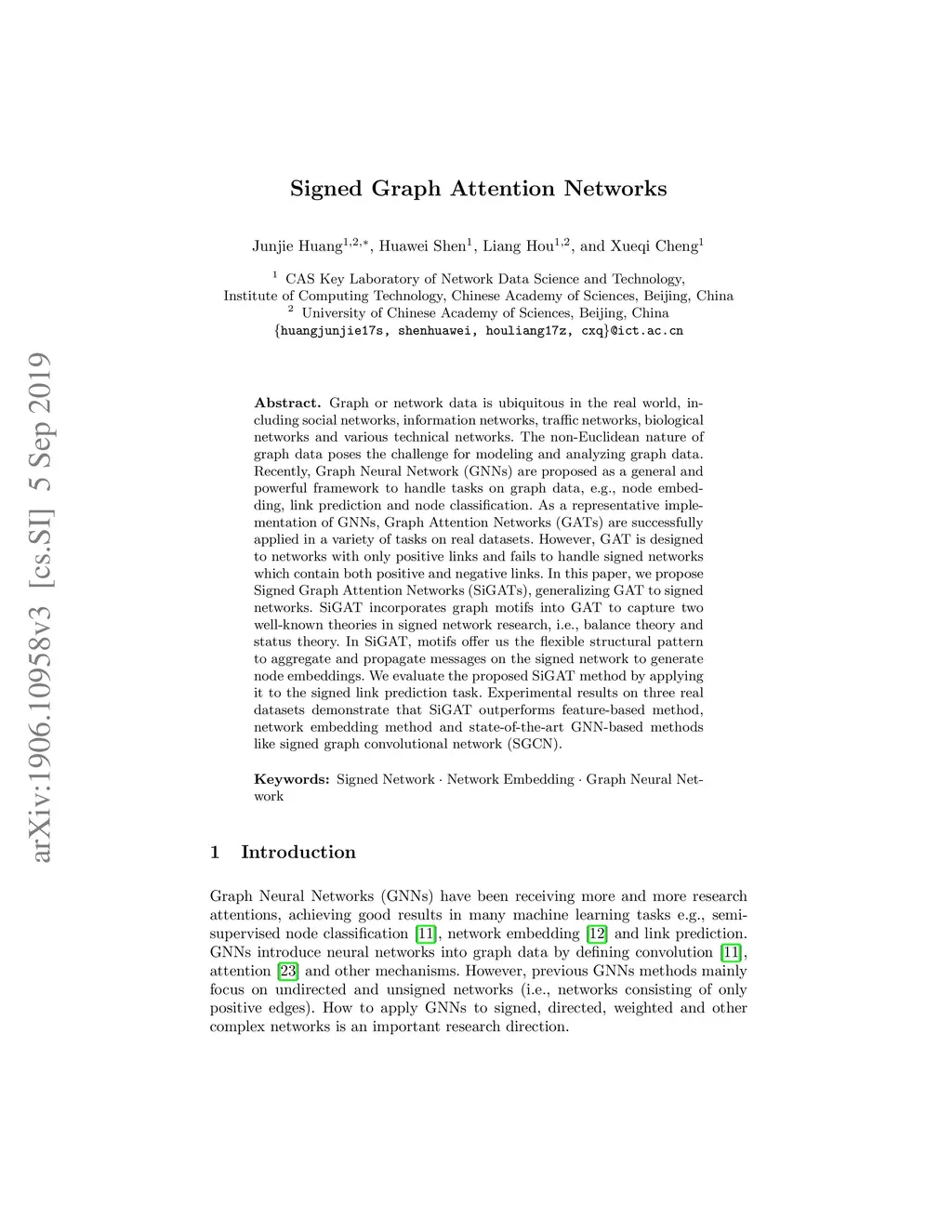 Signed Graph Attention Networks