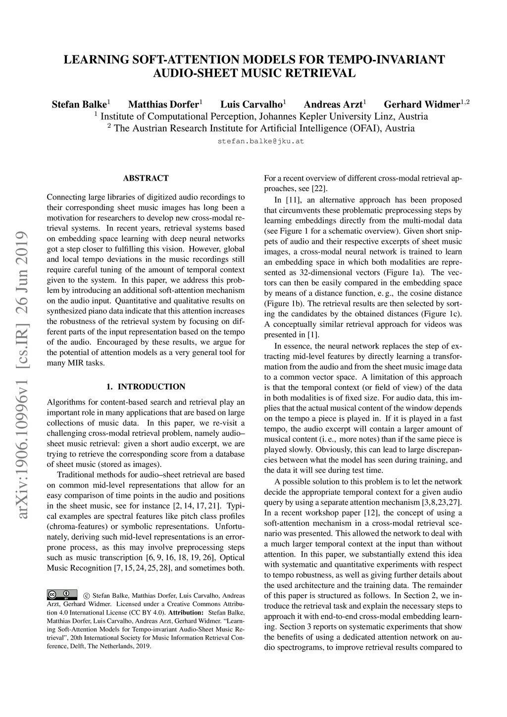 Learning Soft-Attention Models for Tempo-invariant Audio-Sheet Music
