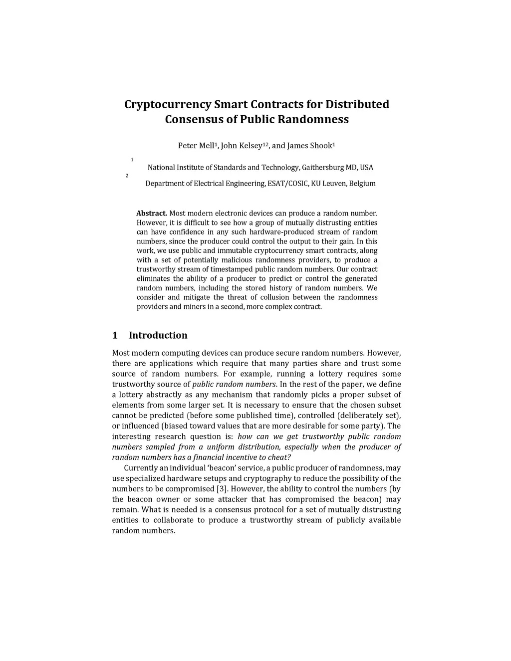 Most modern electronic devices can produce a random number. However, it is difficult to see how a group of mutually distrusting entities can have confidence in any such hardware-produced stream of random numbers, since the producer could control the output to their gain. In this work, we use public and immutable cryptocurrency smart contracts, along with a set of potentially malicious randomness providers, to produce a trustworthy stream of timestamped public random numbers. Our contract eliminates the ability of a producer to predict or control the generated random numbers, including the stored history of random numbers. We consider and mitigate the threat of collusion between the randomness providers and miners in a second, more complex contract.
