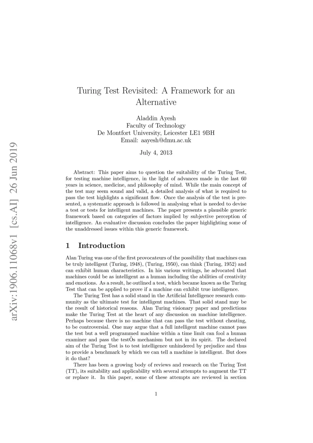 This paper aims to question the suitability of the Turing Test, for testing machine intelligence, in the light of advances made in the last 60 years in science, medicine, and philosophy of mind. While the main concept of the test may seem sound and valid, a detailed analysis of what is required to pass the test highlights a significant flow. Once the analysis of the test is presented, a systematic approach is followed in analysing what is needed to devise a test or tests for intelligent machines. The paper presents a plausible generic framework based on categories of factors implied by subjective perception of intelligence. An evaluative discussion concludes the paper highlighting some of the unaddressed issues within this generic framework.