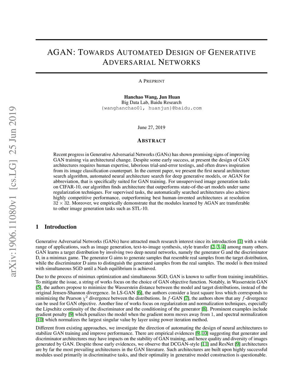 AGAN: Towards Automated Design of Generative Adversarial Networks