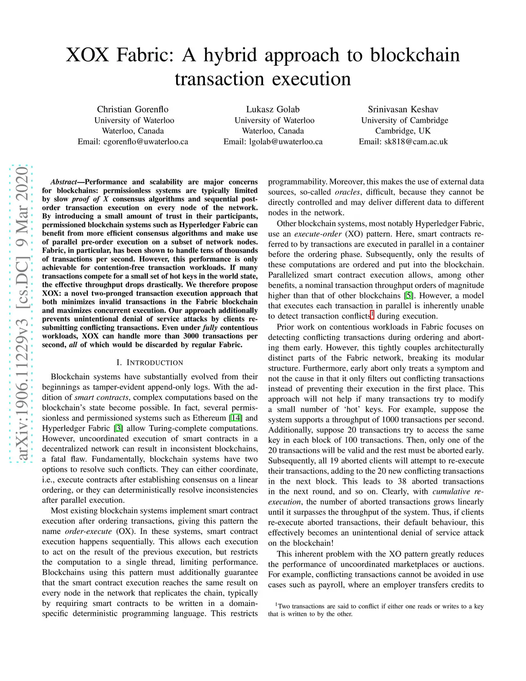 XOX Fabric: A hybrid approach to blockchain transaction execution