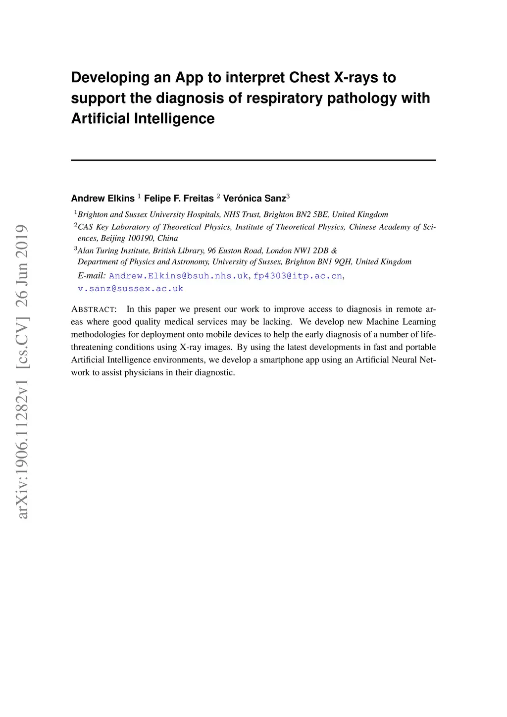 Developing an App to interpret Chest X-rays to support the diagnosis of