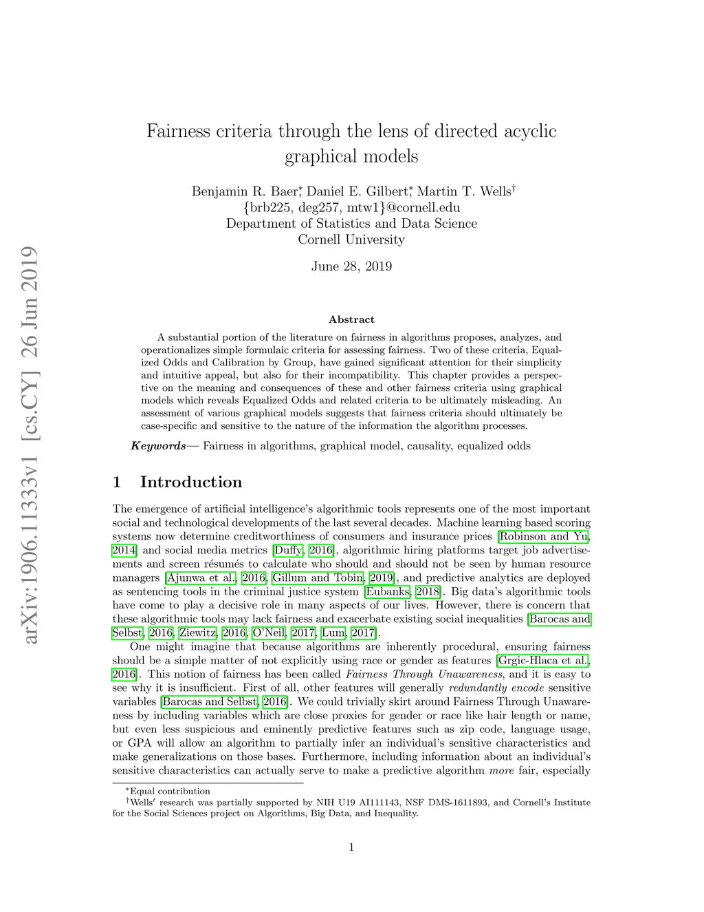 A substantial portion of the literature on fairness in algorithms proposes, analyzes, and operationalizes simple formulaic criteria for assessing fairness. Two of these criteria, Equalized Odds and Calibration by Group, have gained significant attention for their simplicity and intuitive appeal, but also for their incompatibility. This chapter provides a perspective on the meaning and consequences of these and other fairness criteria using graphical models which reveals Equalized Odds and related criteria to be ultimately misleading. An assessment of various graphical models suggests that fairness criteria should ultimately be case-specific and sensitive to the nature of the information the algorithm processes.