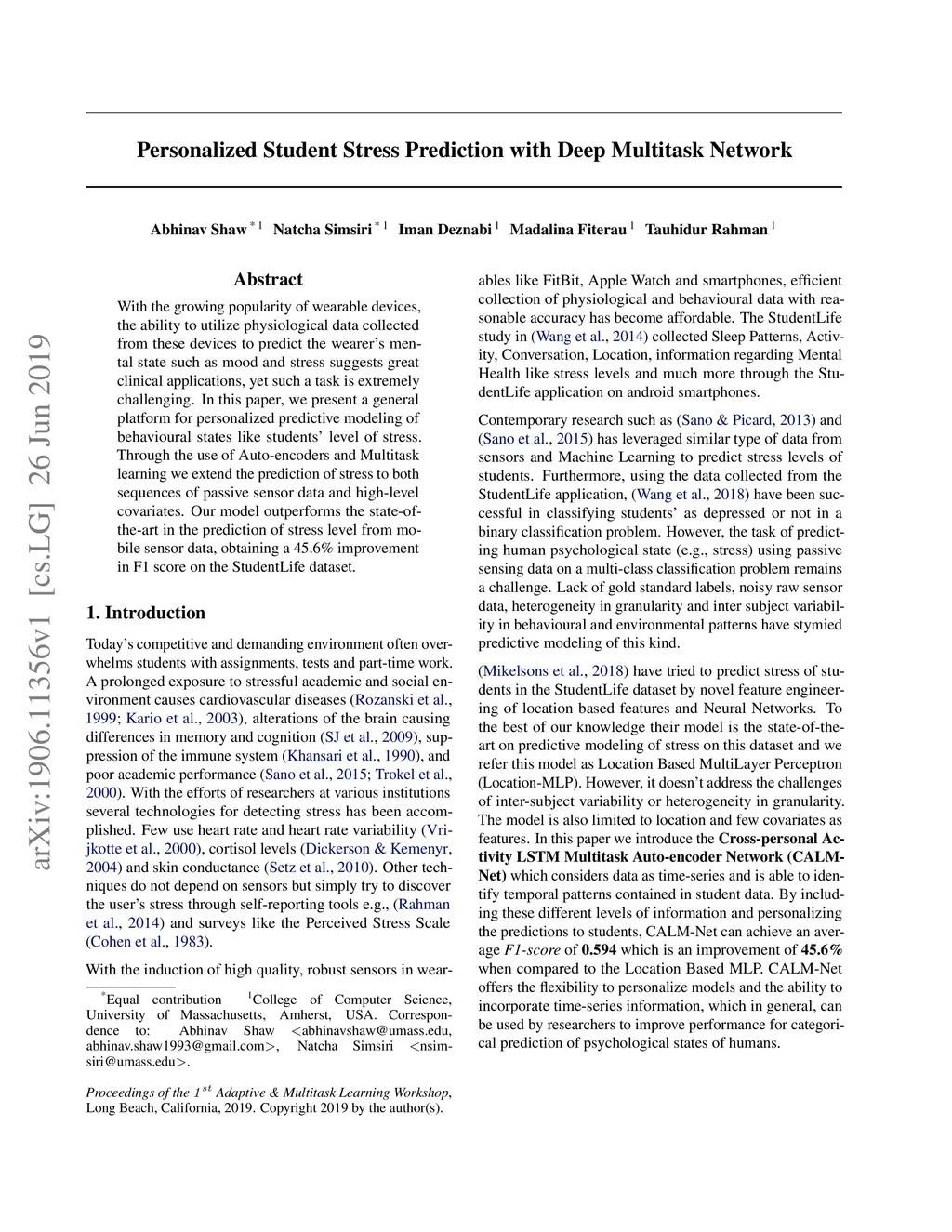 Personalized Student Stress Prediction with Deep Multitask Network