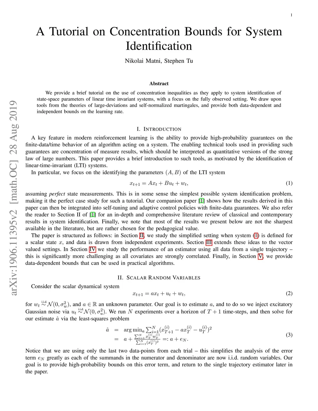 We provide a brief tutorial on the use of concentration inequalities as they apply to system identification of state-space parameters of linear time invariant systems, with a focus on the fully observed setting. We draw upon tools from the theories of large-deviations and self-normalized martingales, and provide both data-dependent and independent bounds on the learning rate.