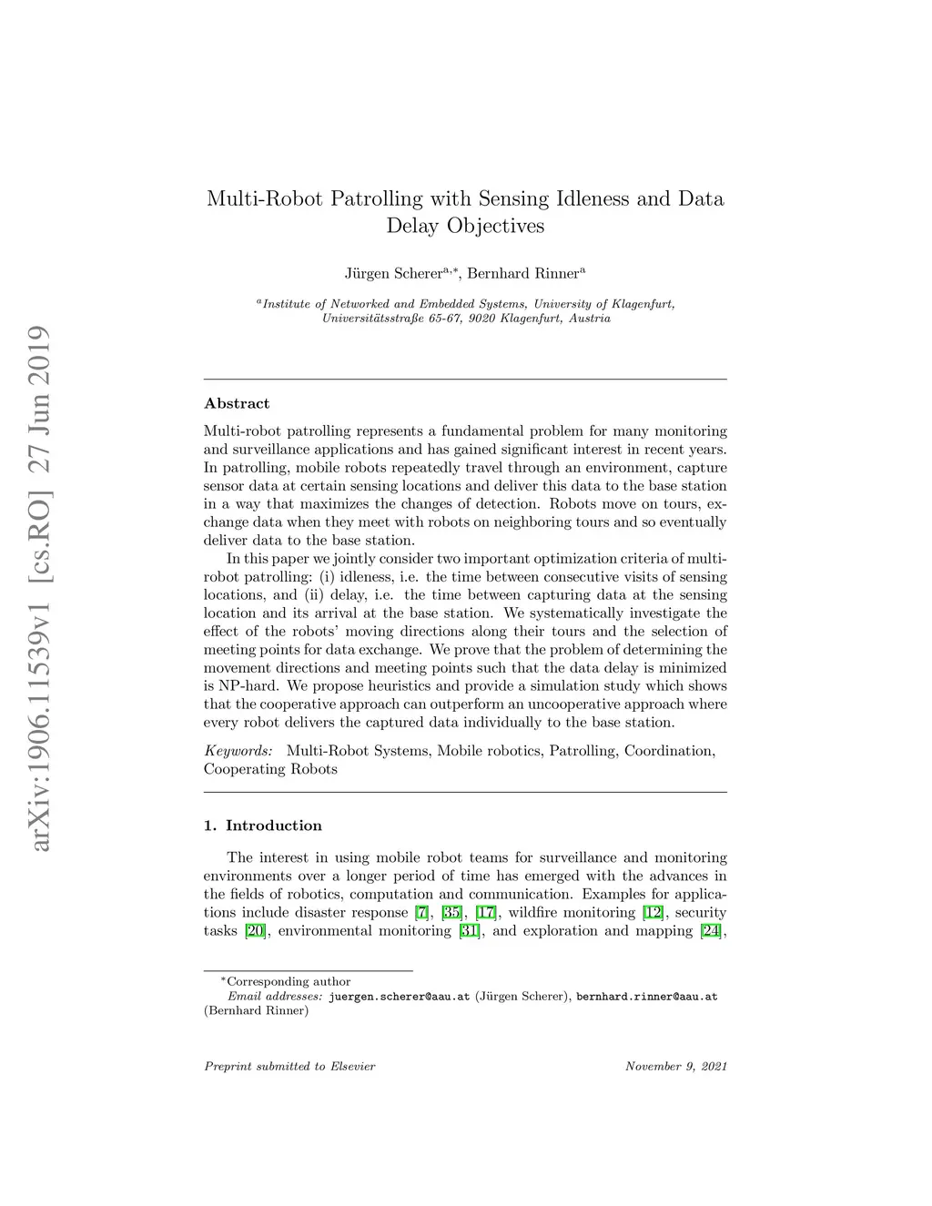 Multi-Robot Patrolling with Sensing Idleness and Data Delay Objectives