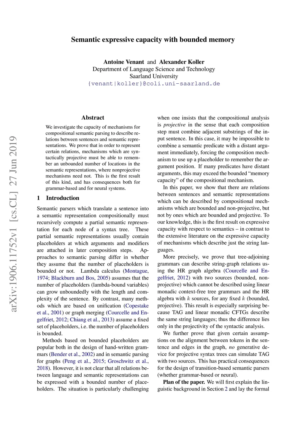 We investigate the capacity of mechanisms for compositional semantic parsing to describe relations between sentences and semantic representations. We prove that in order to represent certain relations, mechanisms which are syntactically projective must be able to remember an unbounded number of locations in the semantic representations, where nonprojective mechanisms need not. This is the first result of this kind, and has consequences both for grammar-based and for neural systems.