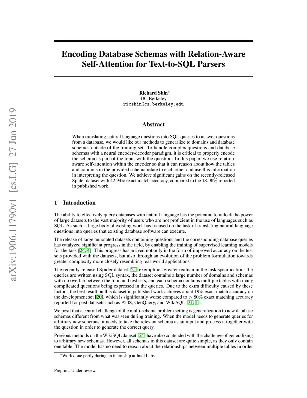 Encoding Database Schemas with Relation-Aware Self-Attention for