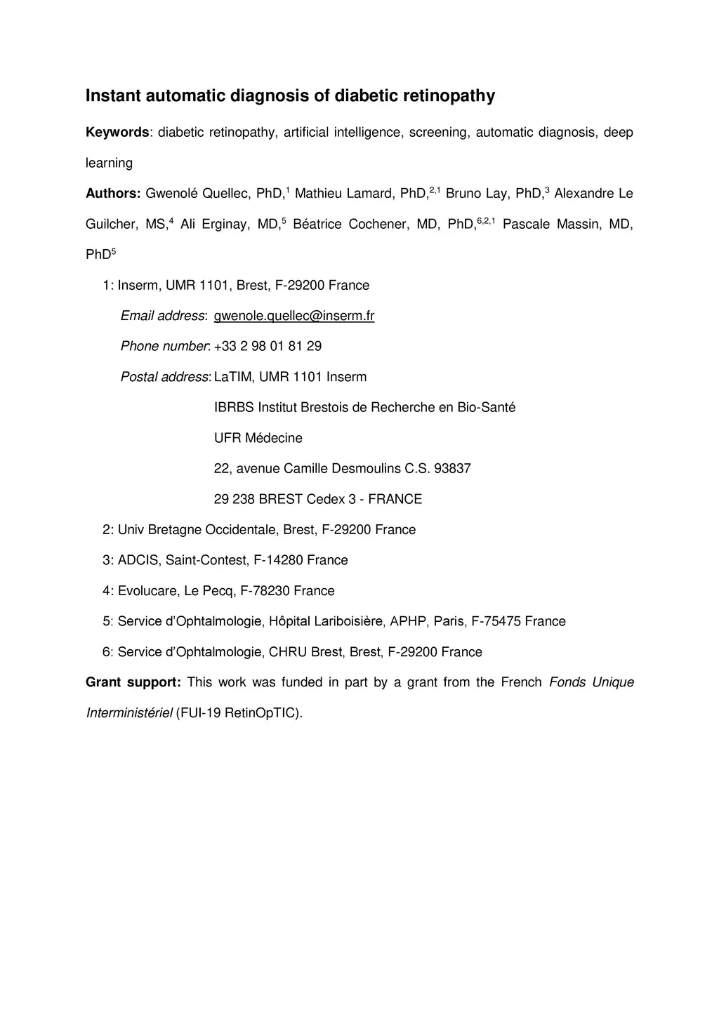 Instant automatic diagnosis of diabetic retinopathy