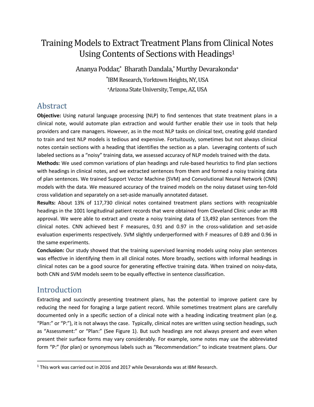 Training Models to Extract Treatment Plans from Clinical Notes Using