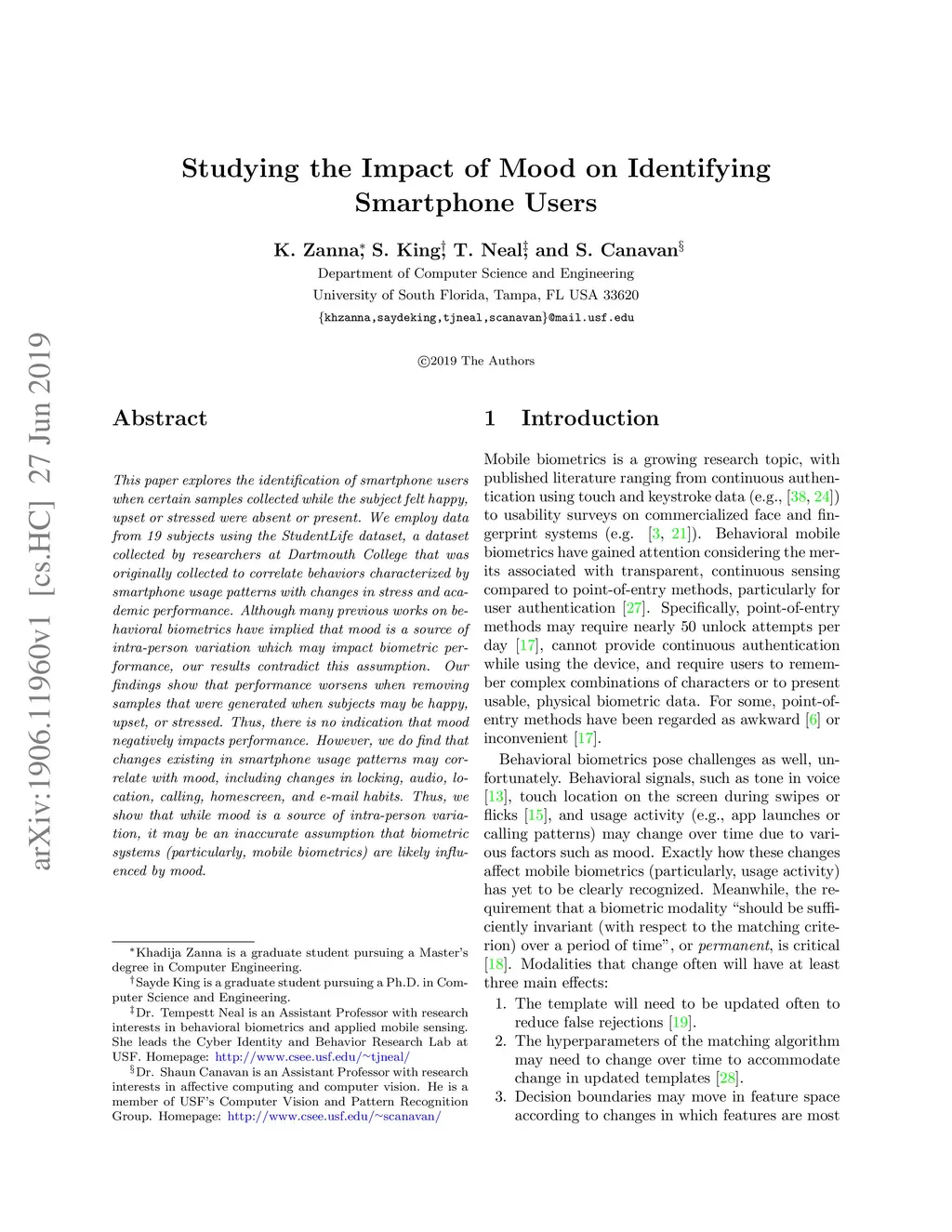 This paper explores the identification of smartphone users when certain samples collected while the subject felt happy, upset or stressed were absent or present. We employ data from 19 subjects using the StudentLife dataset, a dataset collected by researchers at Dartmouth College that was originally collected to correlate behaviors characterized by smartphone usage patterns with changes in stress and academic performance. Although many previous works on behavioral biometrics have implied that mood is a source of intra-person variation which may impact biometric performance, our results contradict this assumption. Our findings show that performance worsens when removing samples that were generated when subjects may be happy, upset, or stressed. Thus, there is no indication that mood negatively impacts performance. However, we do find that changes existing in smartphone usage patterns may correlate with mood, including changes in locking, audio, location, calling, homescreen, and e-mail habits. Thus, we show that while mood is a source of intra-person variation, it may be an inaccurate assumption that biometric systems (particularly, mobile biometrics) are likely influenced by mood.