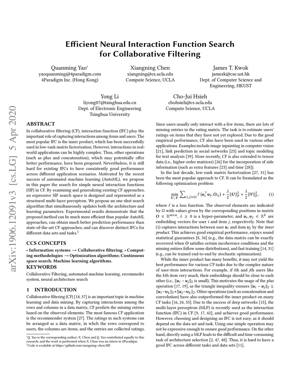 Efficient Neural Interaction Function Search for Collaborative Filtering
