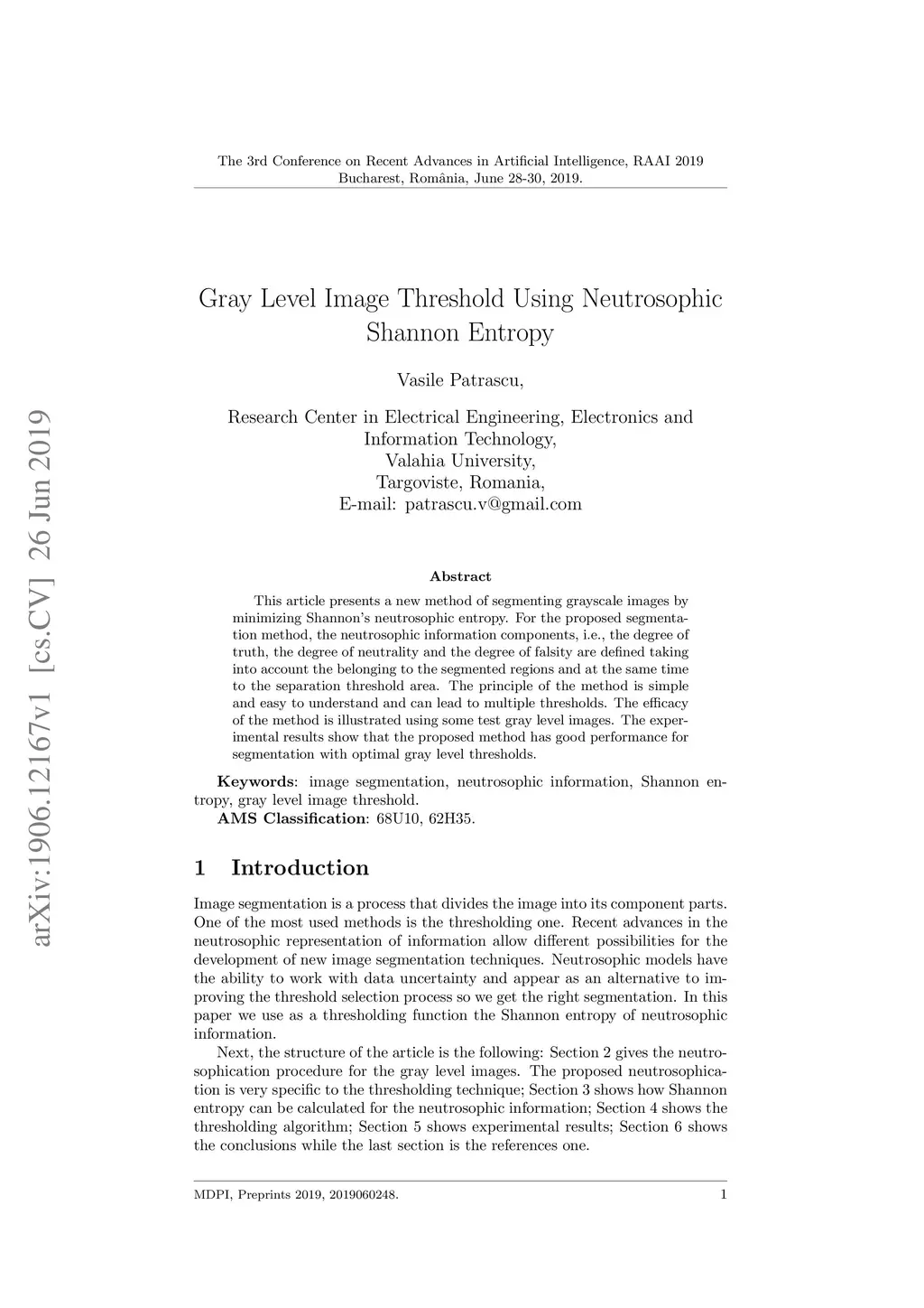 Gray Level Image Threshold Using Neutrosophic Shannon Entropy