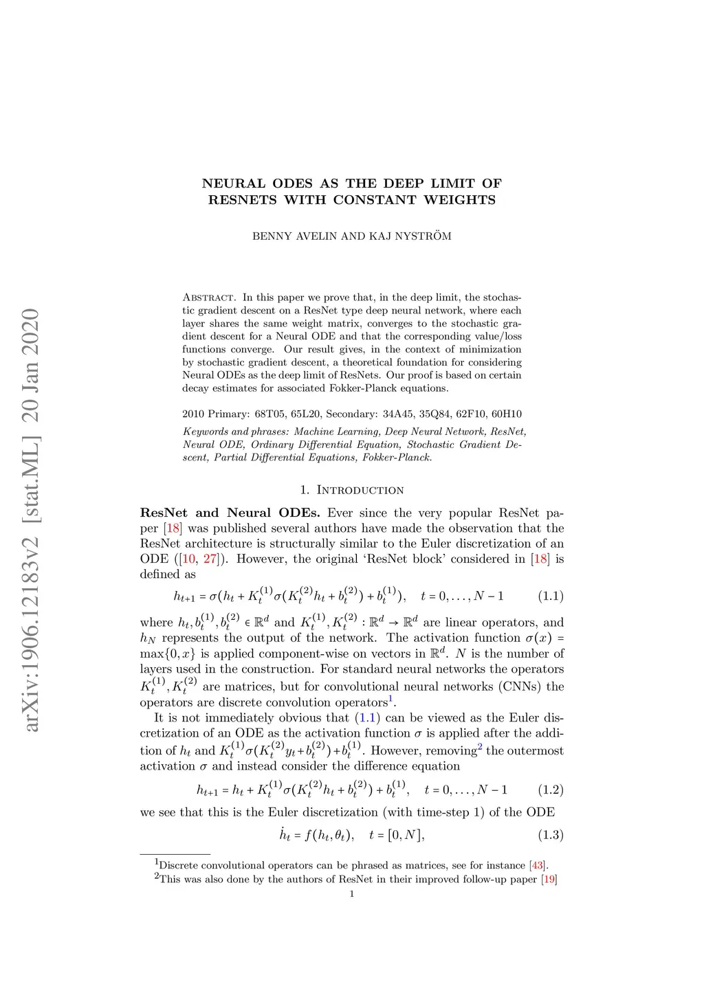 Neural ODEs as the Deep Limit of ResNets with constant weights