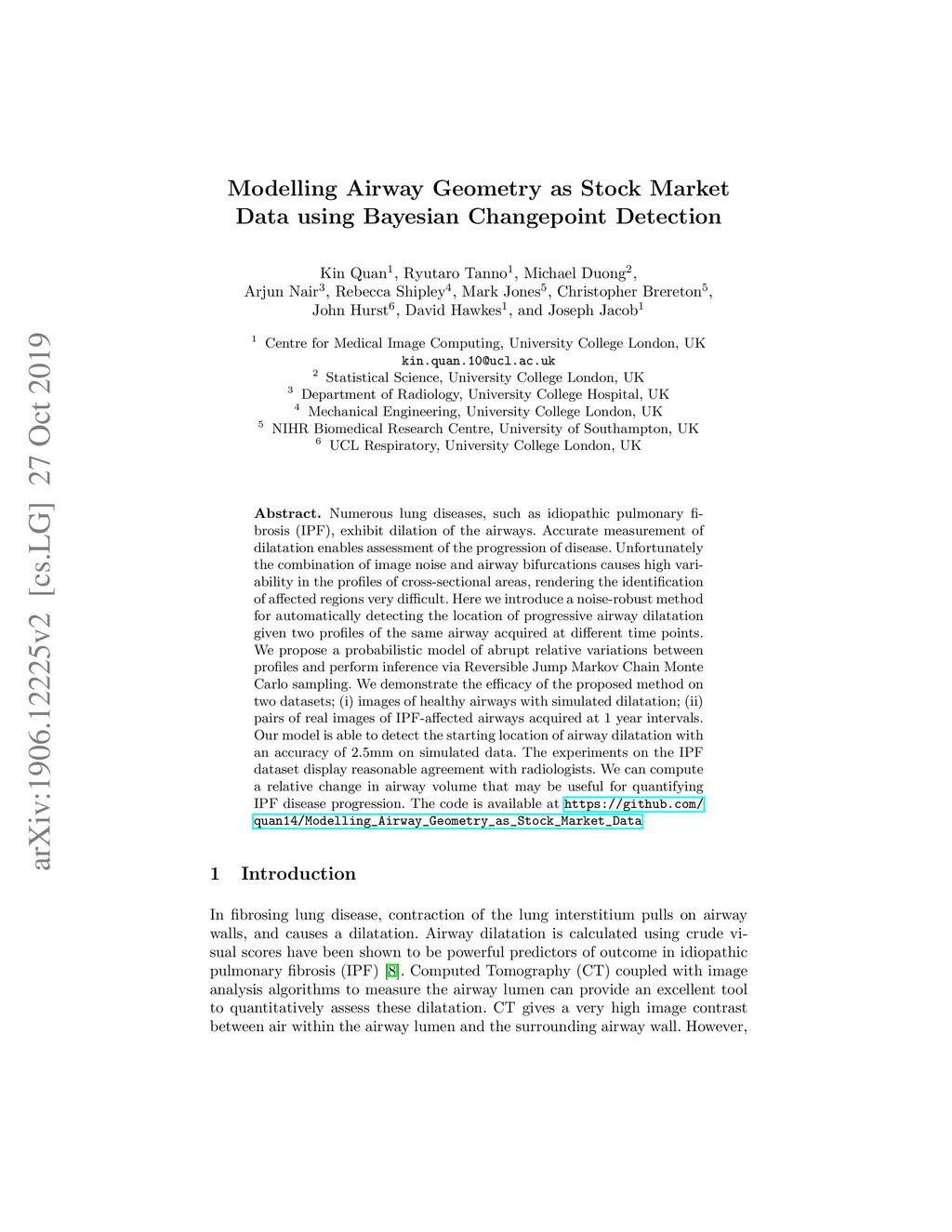 Modelling Airway Geometry as Stock Market Data using Bayesian