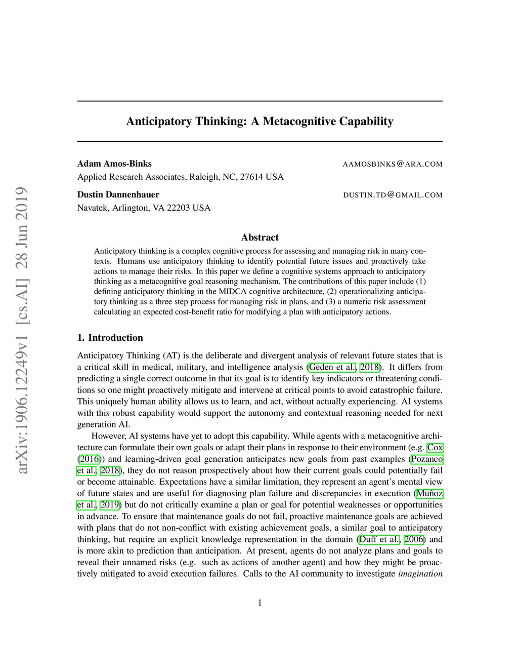 Anticipatory Thinking: A Metacognitive Capability
