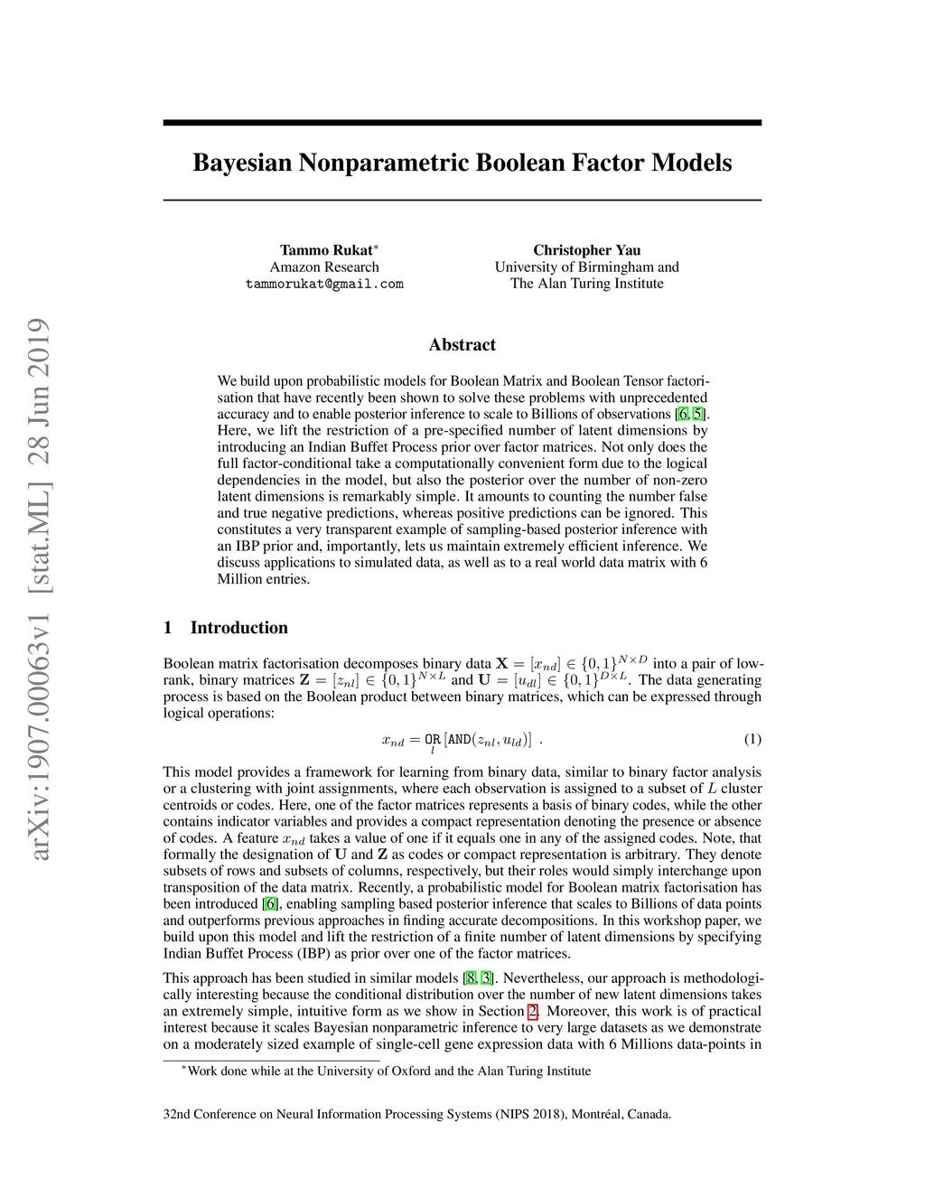 We build upon probabilistic models for Boolean Matrix and Boolean Tensor factorisation that have recently been shown to solve these problems with unprecedented accuracy and to enable posterior inference to scale to Billions of observation. Here, we lift the restriction of a pre-specified number of latent dimensions by introducing an Indian Buffet Process prior over factor matrices. Not only does the full factor-conditional take a computationally convenient form due to the logical dependencies in the model, but also the posterior over the number of non-zero latent dimensions is remarkably simple. It amounts to counting the number false and true negative predictions, whereas positive predictions can be ignored. This constitutes a very transparent example of sampling-based posterior inference with an IBP prior and, importantly, lets us maintain extremely efficient inference. We discuss applications to simulated data, as well as to a real world data matrix with 6 Million entries.