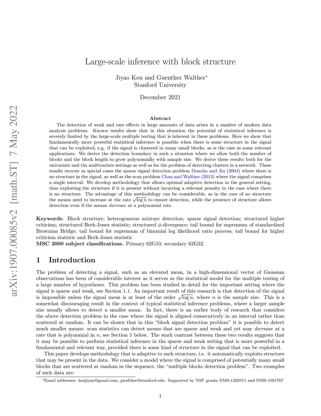 The detection of weak and rare effects in large amounts of data arises in a number of modern data analysis problems. Known results show that in this situation the potential of statistical inference is severely limited by the large-scale multiple testing that is inherent in these problems. Here we show that fundamentally more powerful statistical inference is possible when there is some structure in the signal that can be exploited, e.g. if the signal is clustered in many small blocks, as is the case in some relevant applications. We derive the detection boundary in such a situation where we allow both the number of blocks and the block length to grow polynomially with sample size. We derive these results both for the univariate and the multivariate settings as well as for the problem of detecting clusters in a network. These results recover as special cases the sparse mixture detection problem (Donoho and Jin, 2004) where there is no structure in the signal, as well as the scan problem (Chan and Walther, 2013) where the signal comprises a single interval. We develop methodology that allows optimal adaptive detection in the general setting, thus exploiting the structure if it is present without incurring a relevant penalty in the case where there is no structure. The advantage of this methodology can be considerable, as in the case of no structure the means need to increase at the rate to ensure detection, while the presence of structure allows detection even if the means at a polynomial rate.